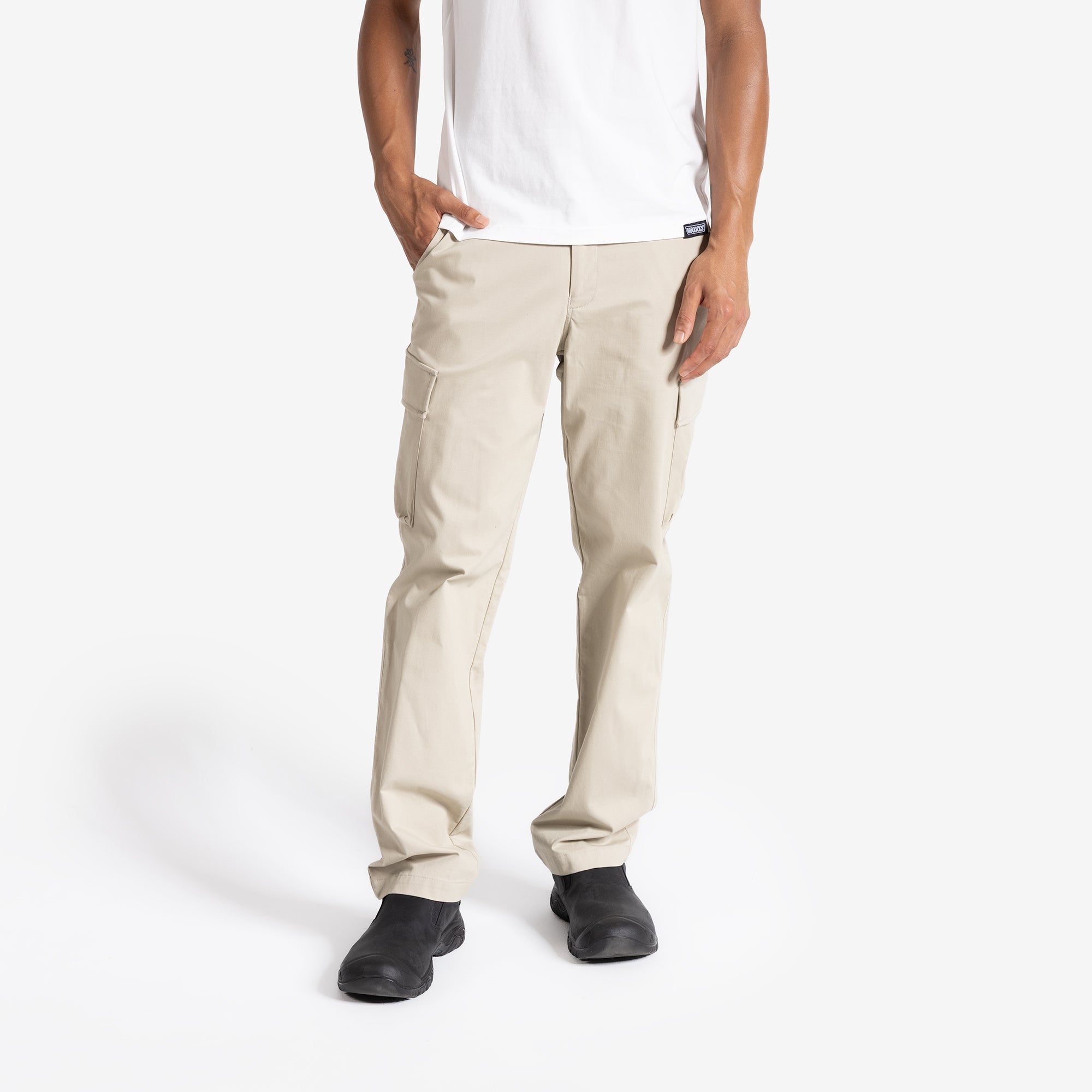 Engineered for performance and built to last, the Men’s Peacekeepers Cargo Pants combine military-inspired utility with modern comfort. Made from a durable plain weave of 98% organic cotton and 2% Lycra, the fabric is lightly sueded for a smooth hand feel and treated with a water-repellent finish for breathable protection.